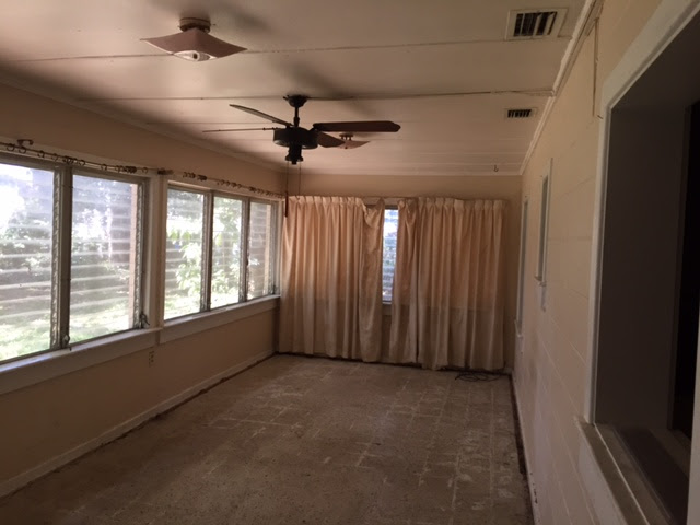 This boring box of a house was on an overgrown lot and had been given up on until I found it. Located in the Boone/Blankner school district, it just needed a lot of TLC and creativity to make it a home that future generations could raise their families in.  New roof framing transformed the boring box into a striking modern design, with a metal roof complemented by cable railing and  galvanized metal decor panels. It took a lot of thinking, but the 2/1 with carport plan wound up yielding a 3/2 with a garage and expanded dining room.